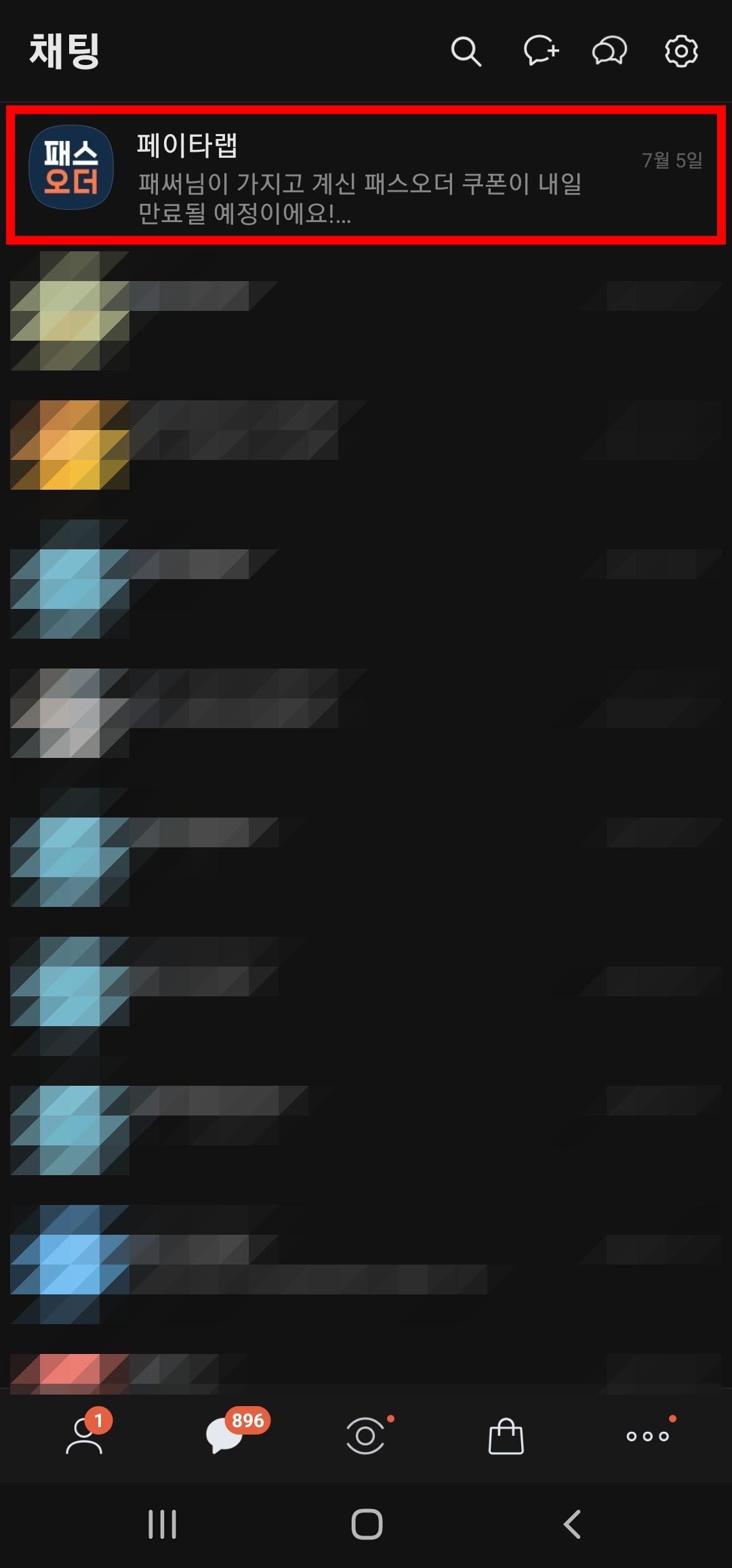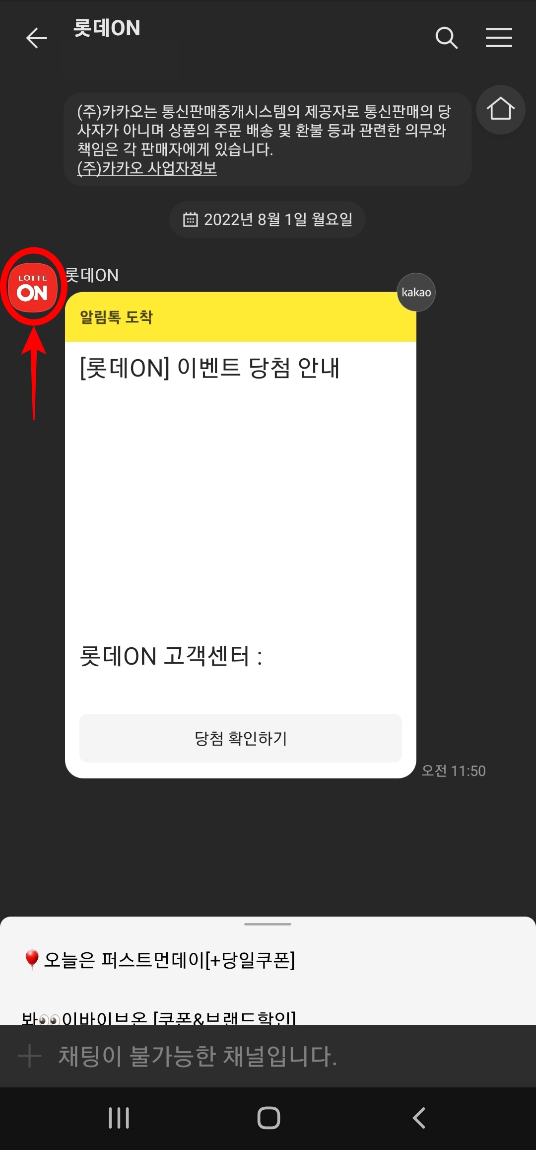 이런식으로 채팅방에 알림톡이 오게되는데요, 해당 방을 선택하여 들어갑니다.