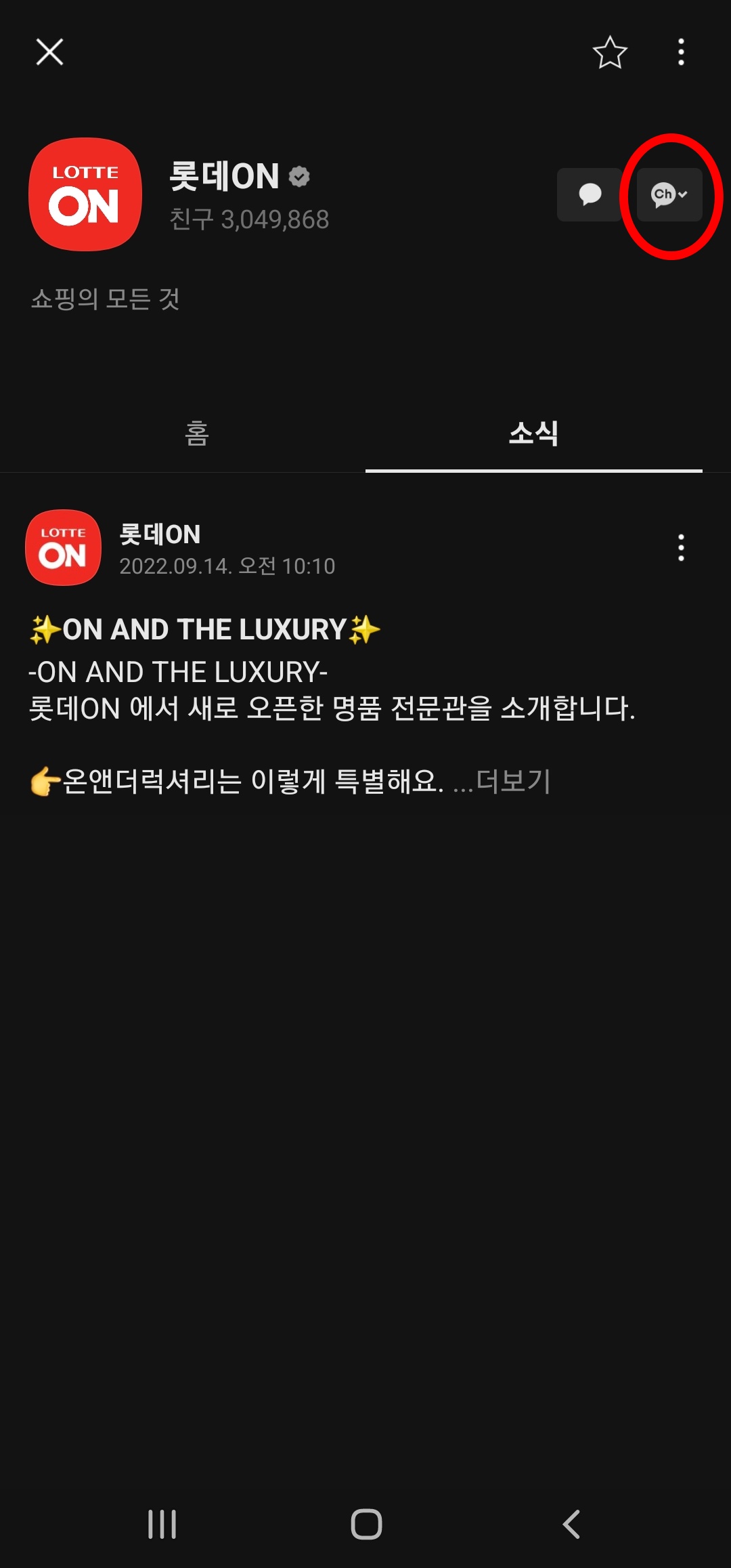 프로필 아이콘 오른쪽을 보면 채널 버튼이 보이는데요, 이것을 선택해 줍니다.